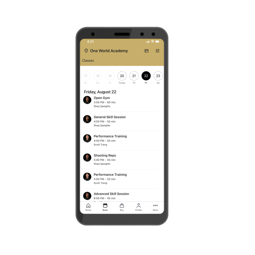Booking workouts is done exclusively through the ‘One World Academy’ app! The app can be downloaded through both the App Store or Google Play Store!